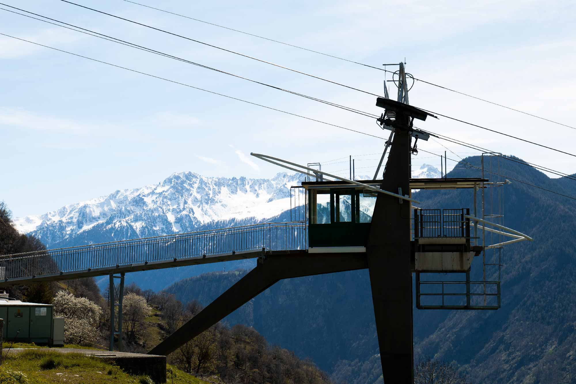 mon van à l’entrée du village et là, je découvre déjà de l’ardoise sur le parking. Mon but, toutefois, est de découvrir aussi une région, mon patrimoine, je ne l’oublie pas. Dans ce village ensoleillé se trouve un arrêt intermédiaire de téléphérique. Une cabine verte y est parquée et ne semble pas prête à bouger ni quitter son petit coin. Elle aussi doit s’y sentir bien, baignée de soleil et face à un magnifique panora- ma sur les montagnes et la vallée du Rhône ! Pour traverser le village, j’emprunte la route principale pentue, où aucun arbre ne me protège de la chaleur. La montée est raide, l’air est sec et mon sac très lourd. Étonnamment, j’accélère ma vitesse afin de vite rejoindre la suite du chemin qui s’enfonce dans la forêt. J’avais découvert d’anciennes photos d’une zone où l’on récupérait l’ardoise. Ces vieilles photos montraient un sentier muletier qui s’enfilait entre deux murs naturels, en ardoise, plus hauts que deux hommes. On y voyait toute la couche d’ardoise dans la paroi rocheuse comme les couches d’un délicieux mille-feuilles.