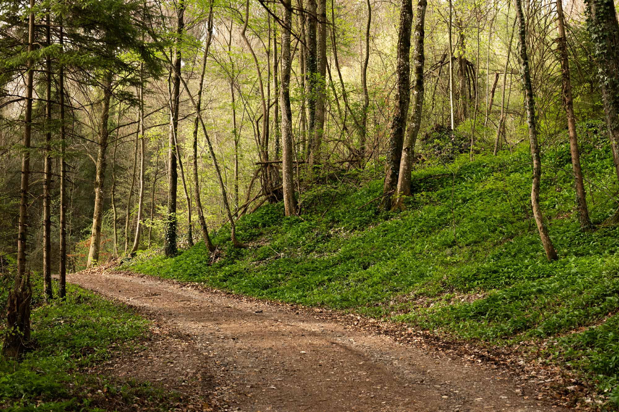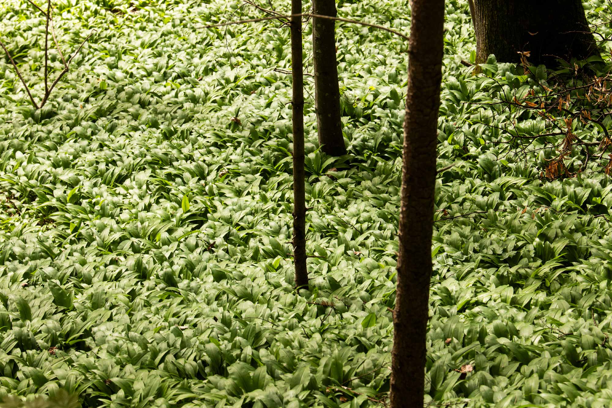 Toffen rime plus ou moins avec tuffeau! Je n’avais jamais entendu ce nom de roche avant de m’intéresser à ce lieu. Le tuffeau est une variété du calcaire poreux. Je ne connais pas bien la Suisse alémanique, je ne parle pas bien allemand et encore moins le suisse allemand. C’est bien dommage, d’ailleurs, car la ma- jeure partie des habitants suisses et moi -même ne pouvons échanger que quelques mots. J’aurais souhaité pouvoir un peu discuter avec des villageois mais la barrière des langues a ralenti et limité mes envies de découvertes. Je dois avouer que j’en porte aussi la responsabilité ! Je connais les montagnes avec leurs stations de skis, mais la campagne du plateau m’est totalement inconnue. Je décide de m’arrêter dans une localité assez isolée. Je parque mon van aménagé qui permet ces diffé- rents déplacements non loin du village. Je traverse ce hameau, en di- rection de l’ouest et pénètre dans une forêt. Une odeur connue remplit l’atmosphère. Le sol est recouvert d’aïl des ours. Souvent, par le passé, j’allais en cueillir afin d’agrémenter certains plats cuisinés D’ailleurs, je recommande le pesto d’aïl des ours, c’est très bon! Le parterre où je marche est verdoyant, à l’infini, et couvert de ces plantes odorantes qui, une fois encore, appartiennent à mes ressentis d’enfance.