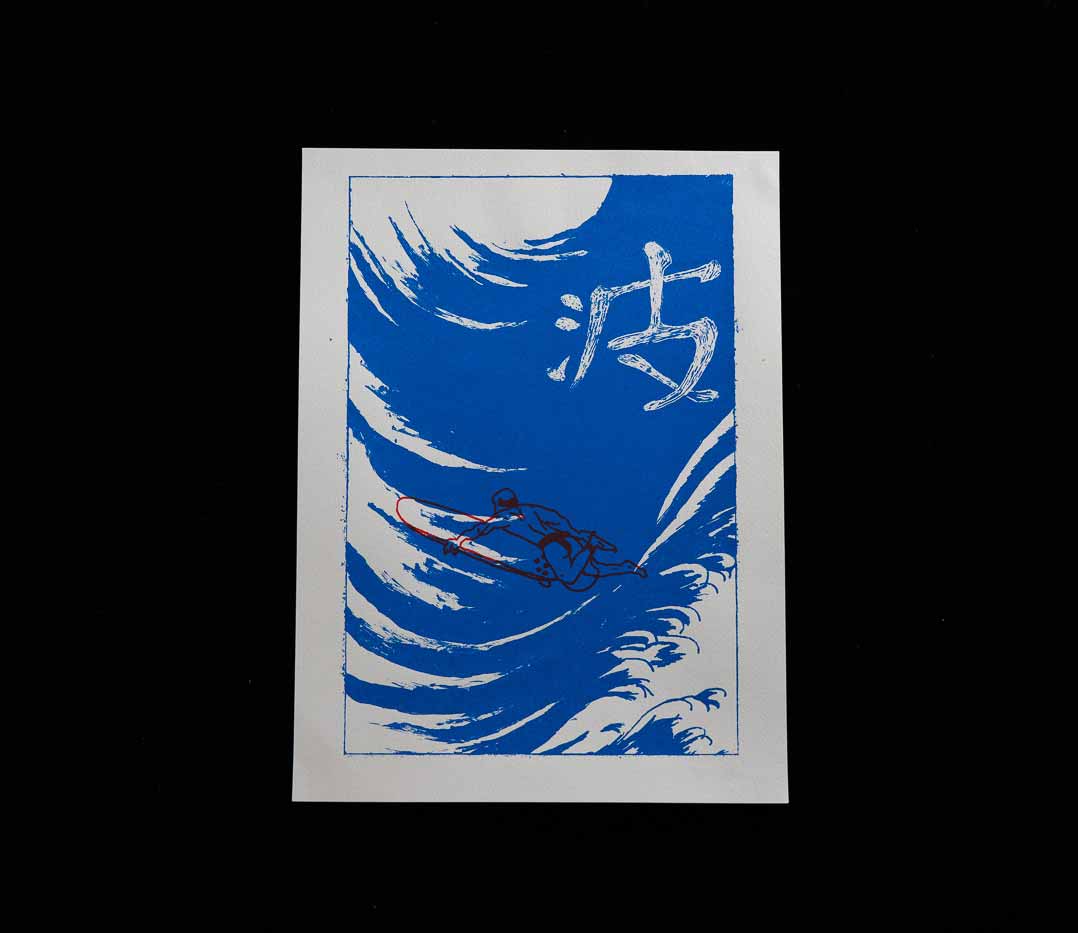 This was my first time doing screen printing (sérigraphie). I took some prints by Hokusai and mixed them together to create a whole new visual.